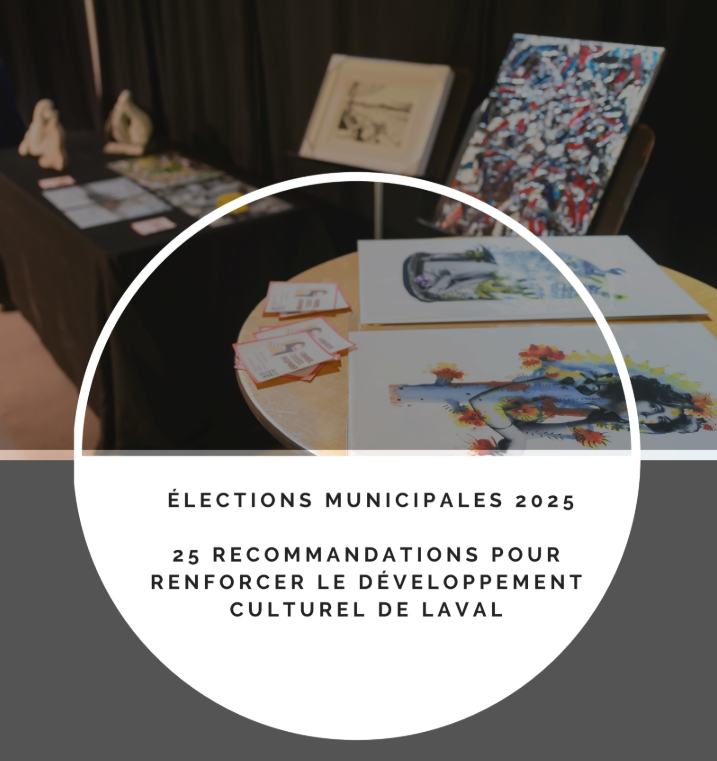 À l’approche des élections municipales du 2 novembre prochain, Culture Laval rend publique une plateforme culturelle ambitieuse, composée de 25 recommandations, pour positionner Laval comme troisième pôle culturel du Québec. Cette initiative vise à placer la culture au cœur du développement durable de la ville, en tant que moteur de vitalité citoyenne, de cohésion sociale et de prospérité économique.