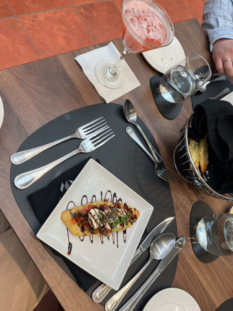 La bruschetta au bocconcini, goûtée par Christophe Labelle et Ecaterina Carlov, présentait une exécution soignée. Christophe souligne :